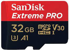 Sandisk 32GB microSDHC Extreme Pro Class 10 UHS-I V30 A1 + adapterrel memória kártya